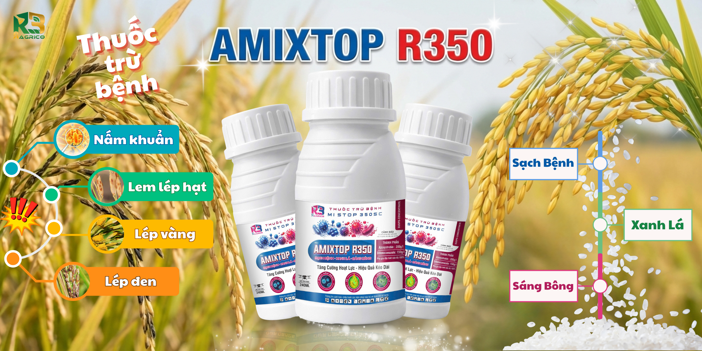CÔNG DỤNG: Sản phẩm được đăng ký bệnh lem lép hạt trên lúa.