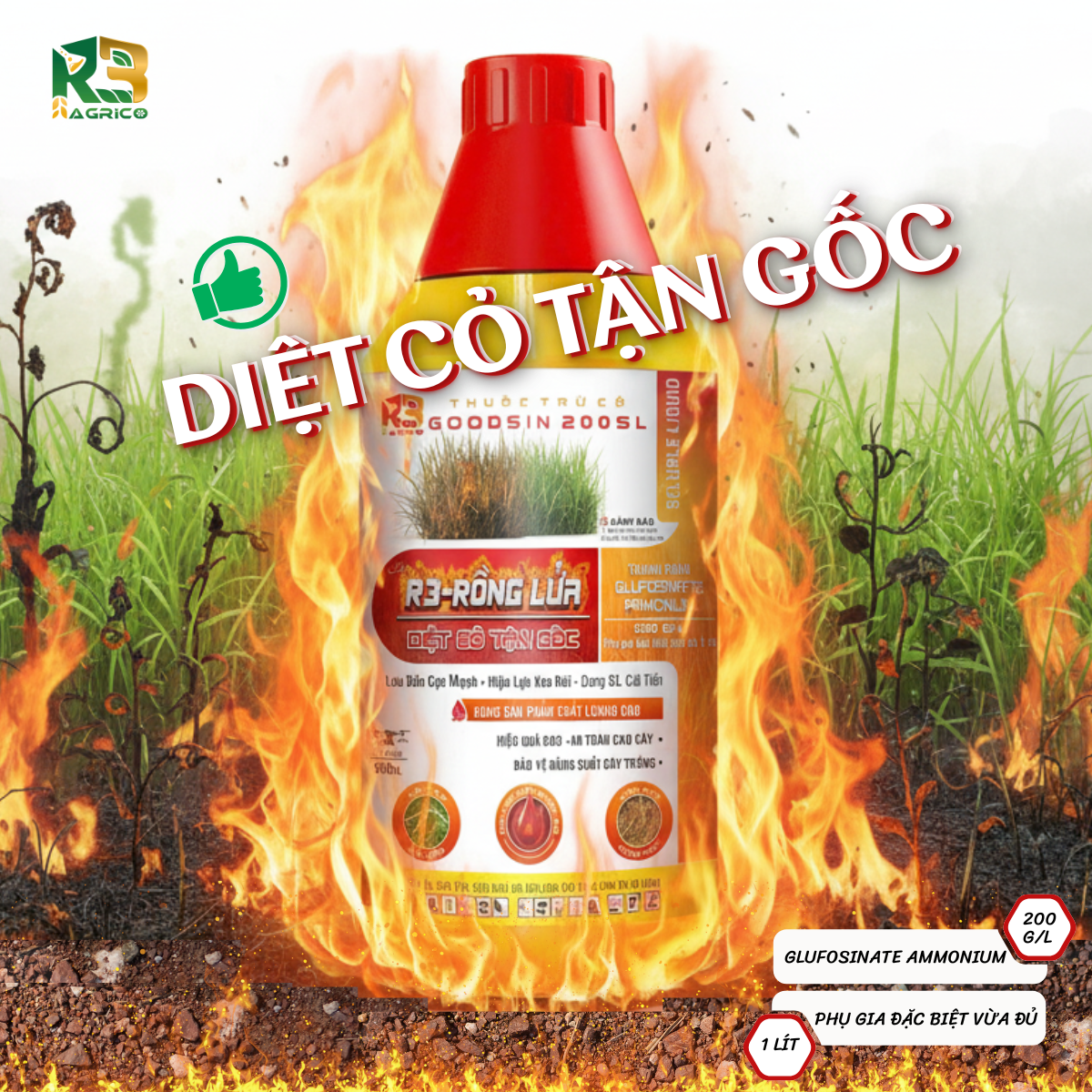 Thuốc trừ cỏ thế hệ mới của R3AGRICO chứa GLUFOSINATE AMMONIUM 200 G/L, lưu dẫn cực mạnh, giúp: